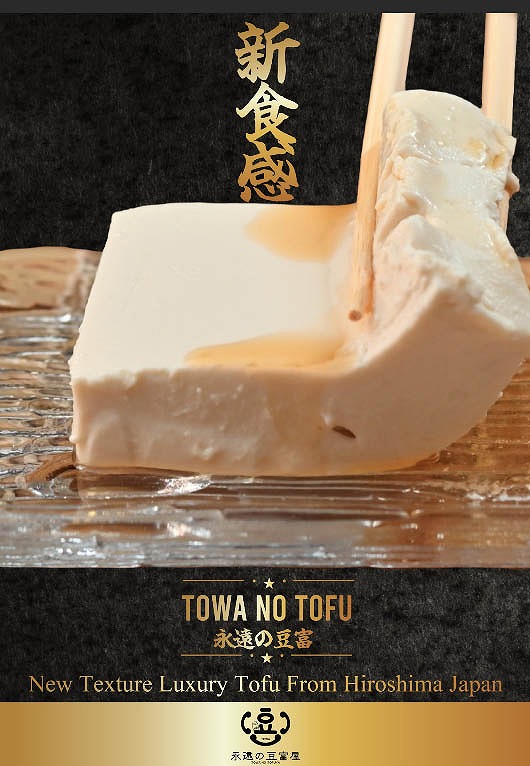 広島県廿日市の「永遠希(とわき)」さんが 試行錯誤して生まれた新感覚豆富。半年で、日本各地に加盟店50店舗 話題沸騰中の新感覚豆富がカンボジアに初上陸 豆腐の凝固剤として使われているにがりを使わず、手で練り続けて固めるので、誰もまねできない濃厚でクリーミーな豆富に仕上がっています。