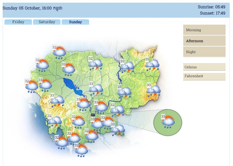 カンボジア水資源・気象省は4日、10月3日〜5日の天気予報を発表しました。