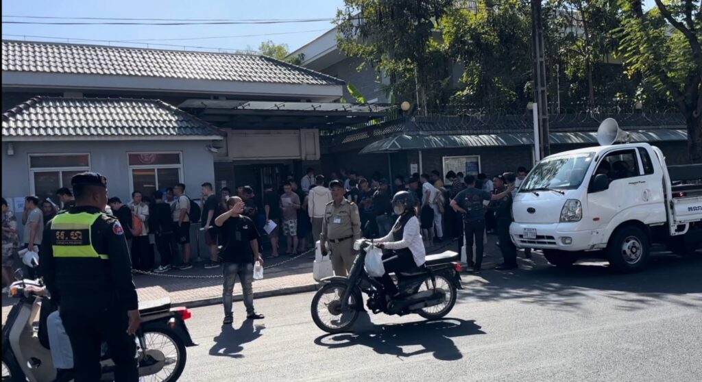 プノンペンの中国大使館前で寝泊まりしたり待機したりしていた中国人約300人が、1月24日に秩序維持のため当局によって旧空港に一時的に滞在するよう連行された。
