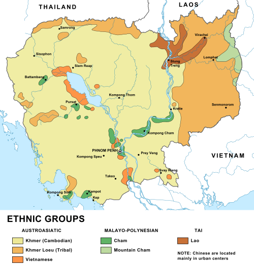 ◇華人(19-20世紀に渡航した中国人:華僑の子孫)、ベトナム人が併せて1割ほど。都市部に居住する者が多い。農村部の万屋や市場の売店に従事する者に華人の血が入っているものが多い。