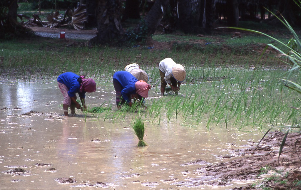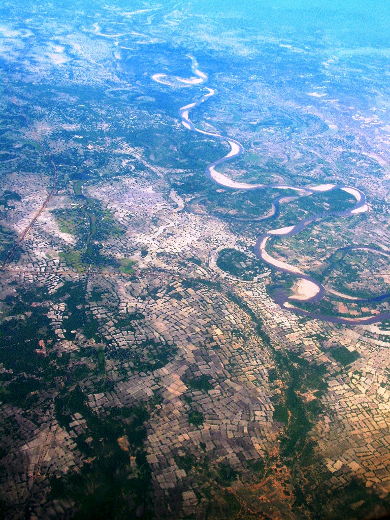 カンボジアのプノンペンかシェムリアップにバンコクから飛行機で入るとタイの農村部ではたくさんの運河・水路と短冊形の田の拡がりを見るが、搭乗機が降下して見えるカンボジアの農村部は不規則な形の小さな農地と砲弾か爆弾跡のようなため池が無数に見える。実はこれがカンボジア平野部の農村の特徴的な姿でタイやベトナムとはその光景が決定的に違うの驚かされる。